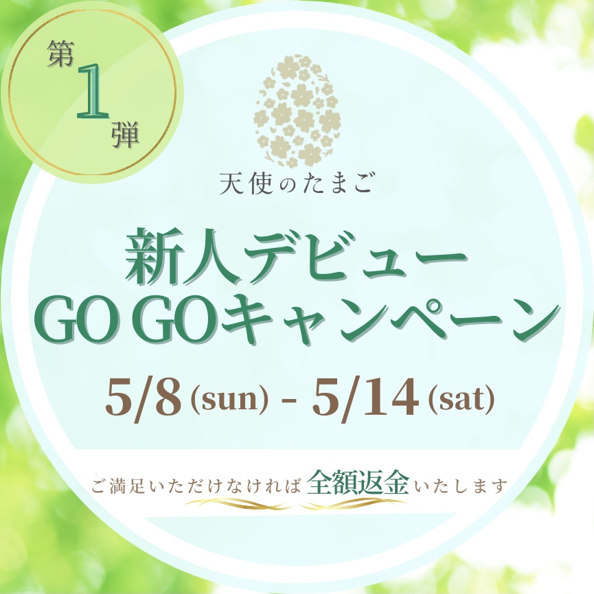 新しいスタッフを迎えるにあたり、日頃より天使のたまごをご愛顧いただいていらっしゃいます皆様にも、厳しい研修期間を終え、認定試験を合格したばかりの新人デビューキャンペーンに、ぜひご助力いただけますと幸いでございます。