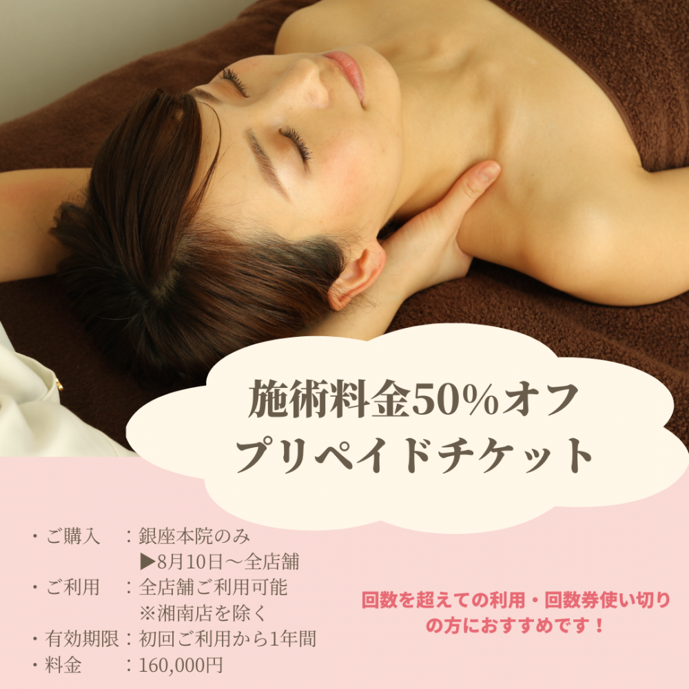 ※こちらのキャンペーンチケットご購入の場合、8月9日までは購入店舗は銀座本院限定となります。8月10日より全院にてご購入いただけます