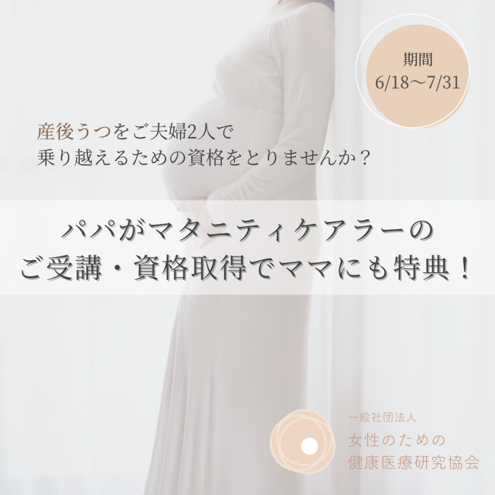 本協会が認定する、妊婦さんに寄り添うための、【マタニティケアラー】の父の日資格取得キャンペーンについてのお知らせです。