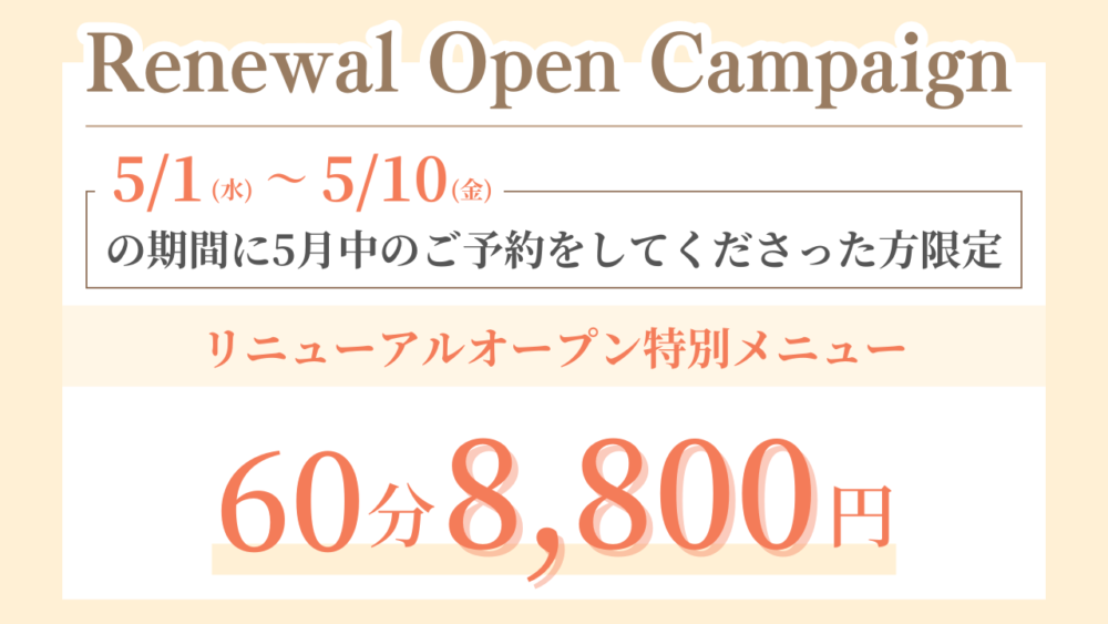 WEB予約の場合は、【リニューアルキャンペーン60分】をご選択いただき、ご予約くださいませ。
