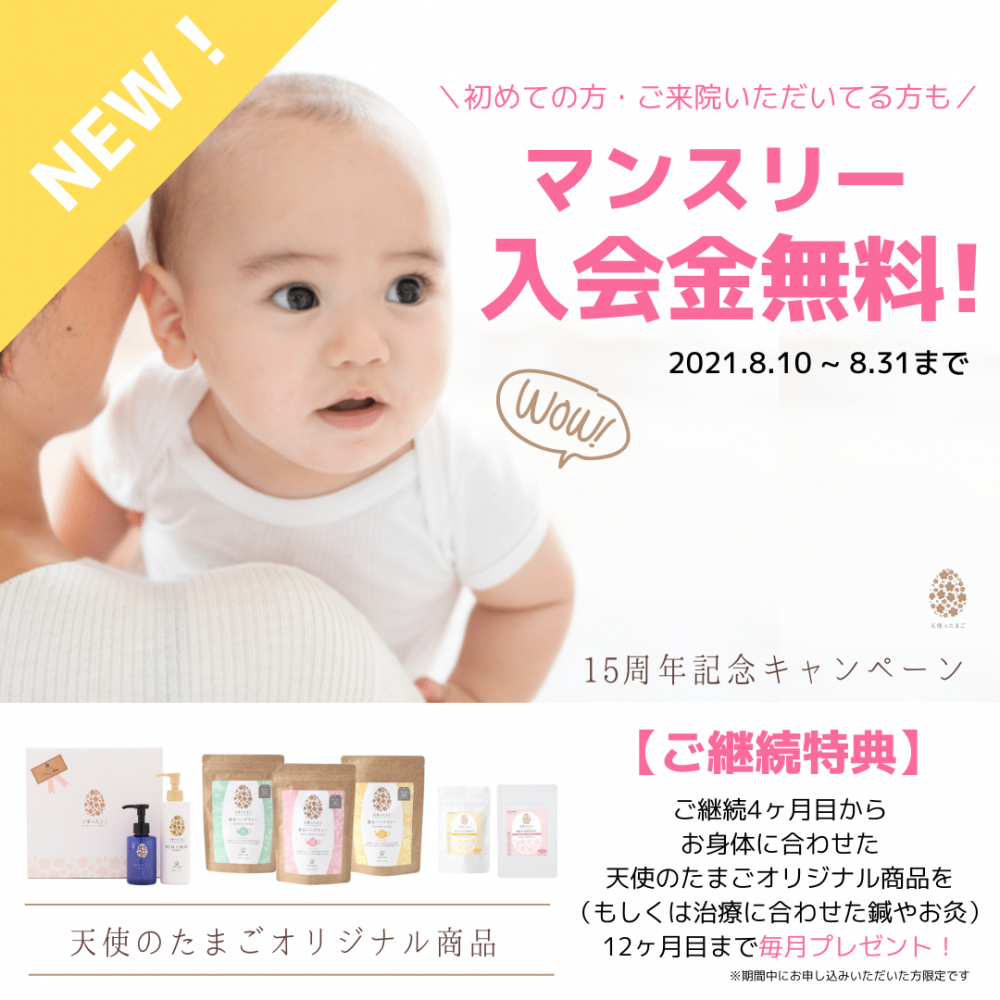【8/31まで】全院にて15周年記念キャンペーン開催 – 天使のたまご