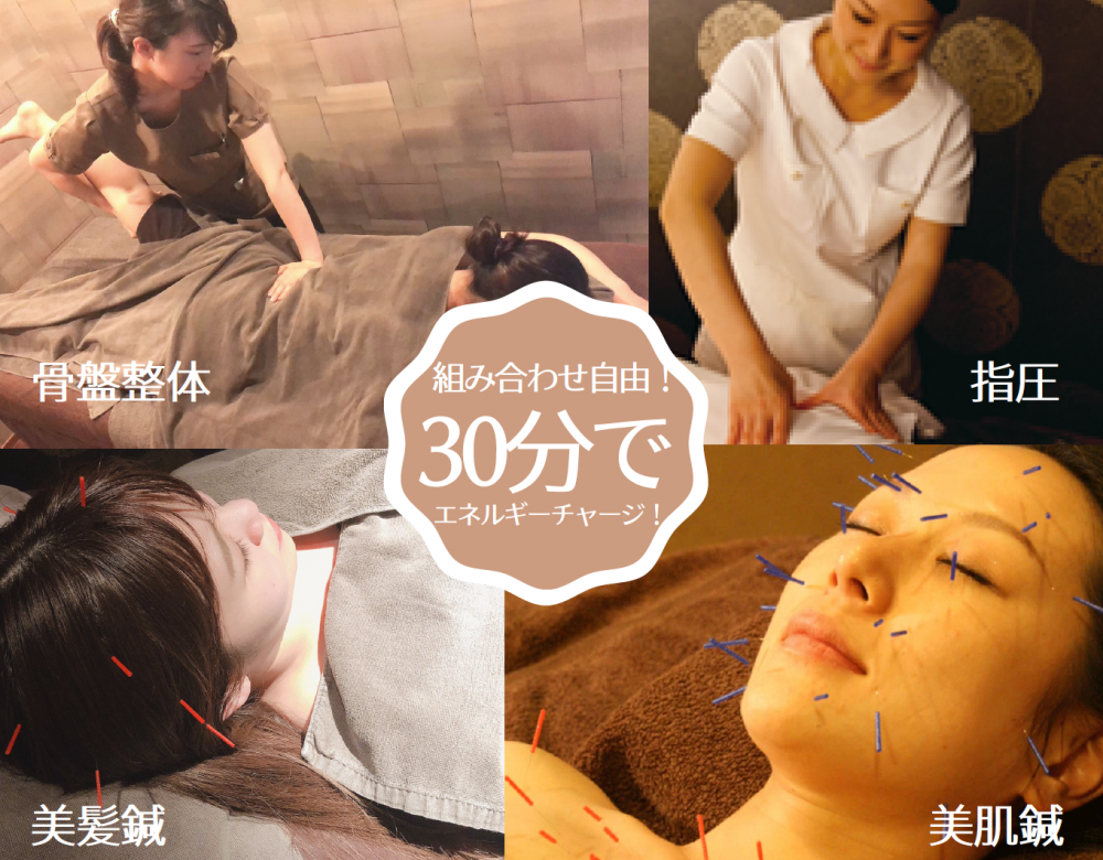 お悩みの症状に合わせて、オプションを含めたコースを最低30分から、最大2つ(60分)までお好きに組み合わせてお受けいただくことができます。
