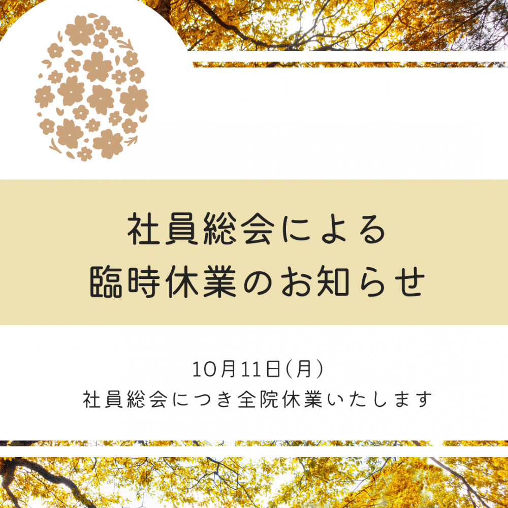 社員総会のため、10/11(月)を全院休業いたします。