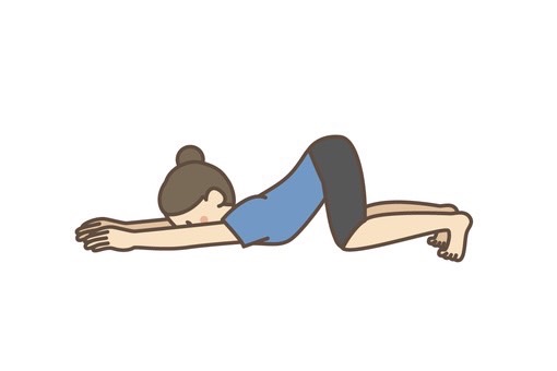 ④そのまま息を吐きながら、お尻のみ後ろにのばしていきます。(※この時腕は前にぐーっと伸ばします)