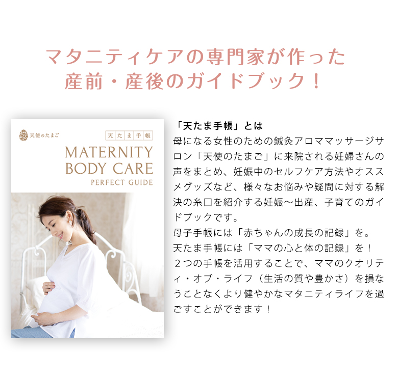 天使のたまごではマタニティボディケアパーフェクトガイド天たま手帳をご来院の皆様にプレゼントしております。