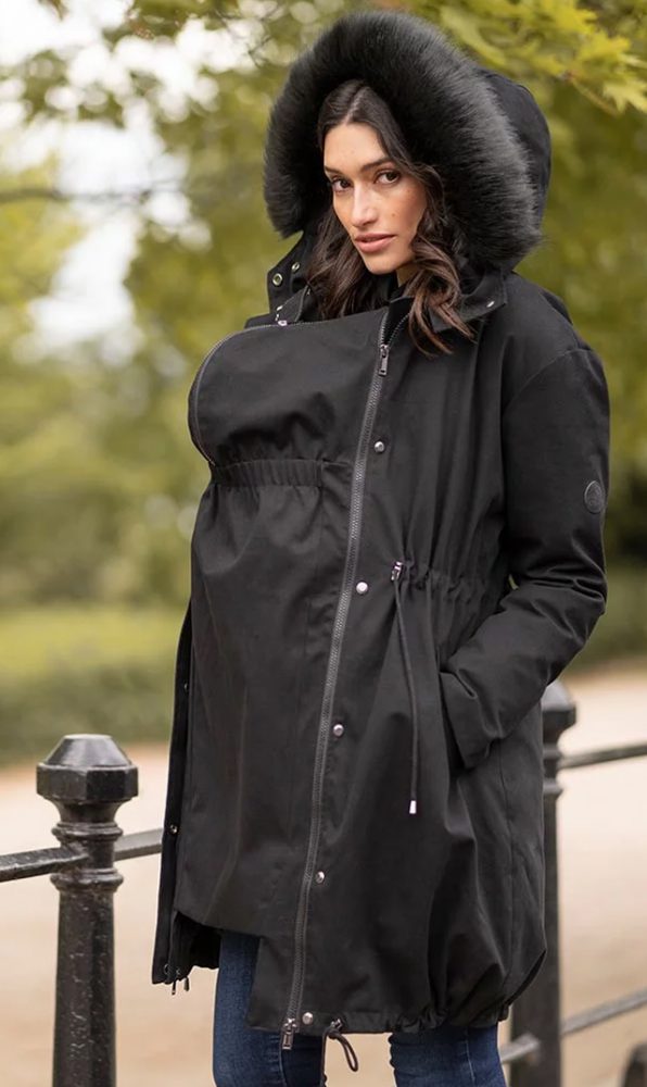妊娠中から赤ちゃんを抱っこされるママさんも着られる『ダッカー付きコート』。