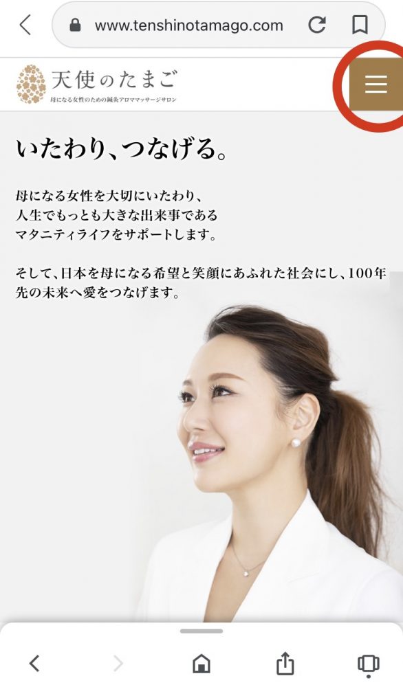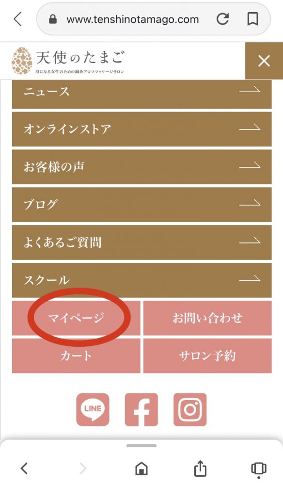 天使のたまごでの施術予約は左下の「サロン予約」から進むことができます。