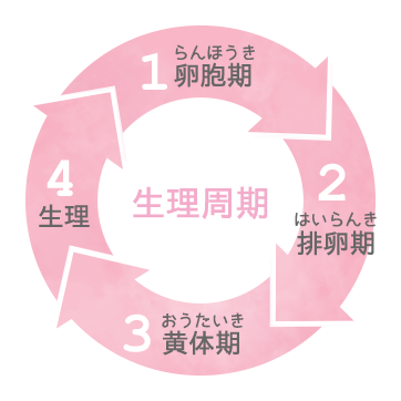 生理が起こるまでには4週間(28日~30日)を1サイクルとして、いくつかのホルモンの影響で女性の身体や心の状態は4つの周期を繰り返します。