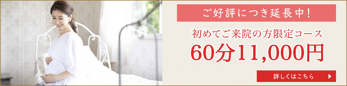 産後1か月から骨盤矯正をオプションでつけることが可能です。産後半年〜1年の間に骨盤はしっかりと固定されてしまうため産後すぐからの定期的な施術が必要です。